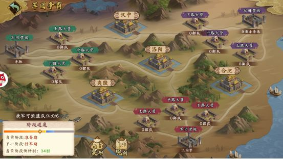 进入行军期后,玩家不能再调整进攻阵容,战场中的军营点全部隐藏,不能再点击。