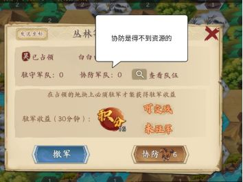 只有驻守才能得到积分,协防是得不到积分的。