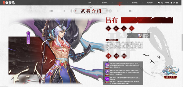 东汉群雄之一,三国时第一勇将。初为丁原部下,后投董卓,世人称“人中吕布,马中赤兔”。后因貂蝉与董卓渐生嫌隙,最终刺杀董卓。兵败李傕后投奔张邈并袭击曹操。被曹操击败后投奔刘备。受袁术支持,驱赶刘备占据徐州。最终被曹操、刘备联合击杀。