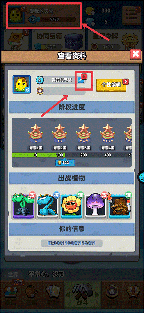游戏中的植物种类丰富,玩家可以通过召唤池或商店获取稀有的植物,并通过升级提升它们的能力。此外,金币获取方式多样,包括完成任务、开启协同宝箱、签到、充值和抽奖等。改名也很方便,在资料页面点击笔的图标就能免费更改名字。