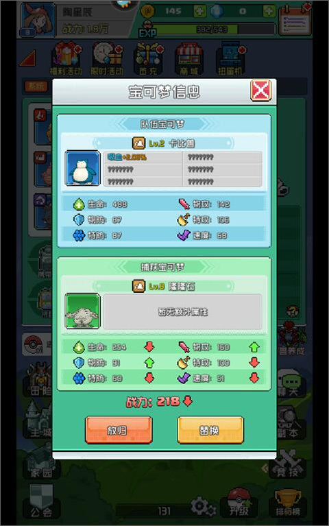 2、玩家狩猎获取到的宝可梦如果属性高的话直接替换,属性低的话可以直接放归;