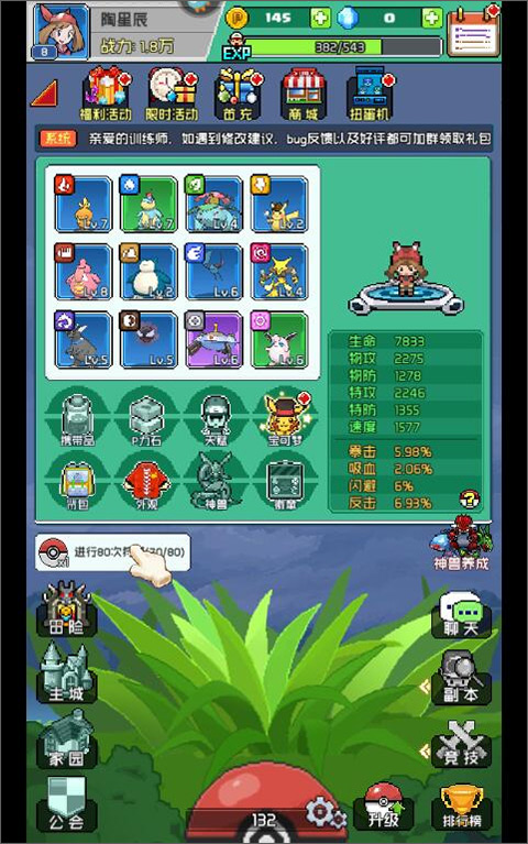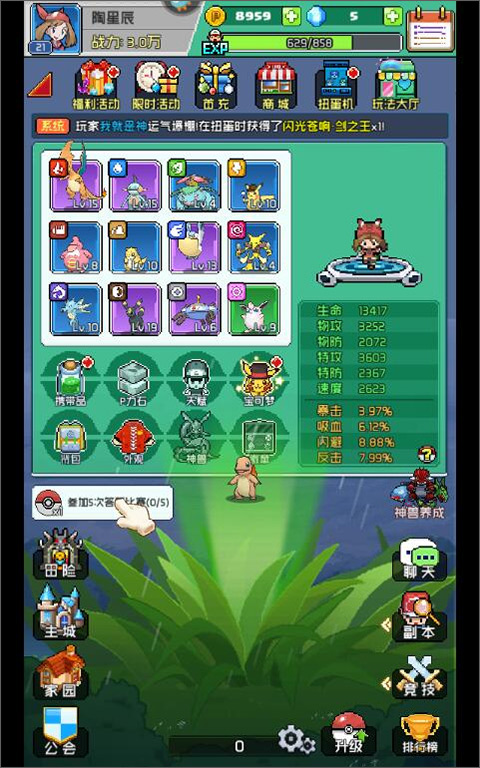 3、玩家在游戏中通过不断地进行狩猎抽取宝可梦,达到一定数量等级后就可以进行角色升级了;