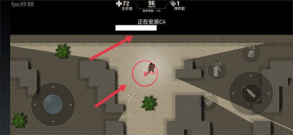 5、游戏中一共有两种获胜方式,完成任何一个任务都可以获胜。第一种找到地面上的红色圈圈,站进去安装c4,待c4爆炸后获得游戏胜利