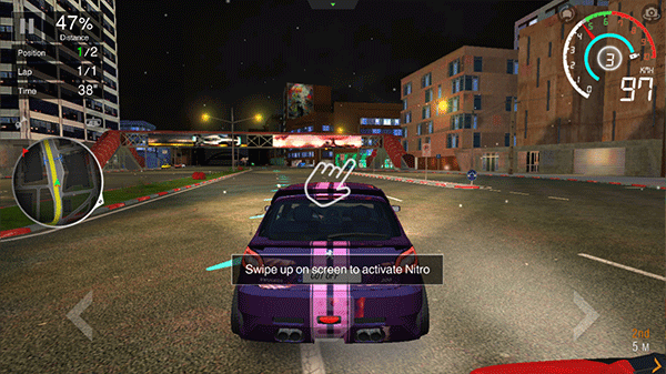2、急速的最后的冲刺极其酷帅,你能转换各种各样跑道来展现你精湛的开车技术。