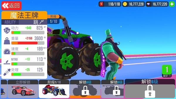 1、在赛道上有着许多金币,完全可以通过收集来进行暂时的强化增强性能进行比赛。2、高度自由的游戏玩法,玩家在游戏中可以自由的设计趣味的赛道进行挑战。