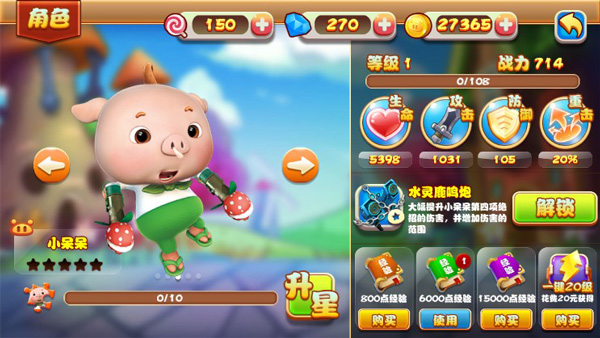 1、玩家可以选择任意一种主角(猪猪侠、波比、小呆呆、超人强、菲菲),展开炫酷战斗;2、游戏集合了《猪猪侠》中主角、场景及背景故事;
