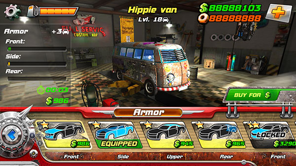 5、丰富的升级系统:车体、引擎、保险杠等等。