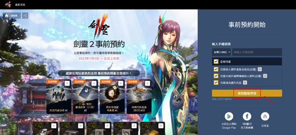 1、打开剑灵2港台服官网,点击下方“事前预约”;