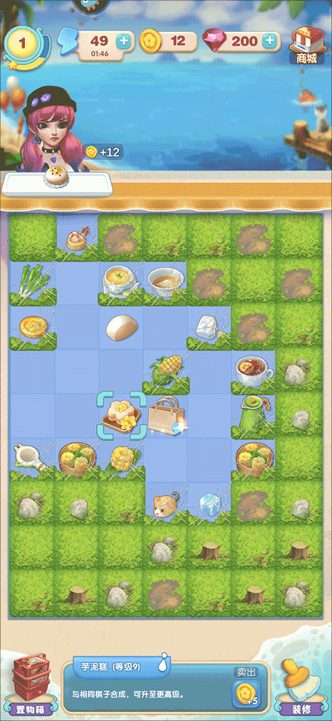 1、完成订单,可获得“水滴”棋子,可以直接双击收集,也可合至更高等级后收集,收获更多“水滴”。