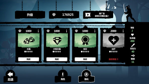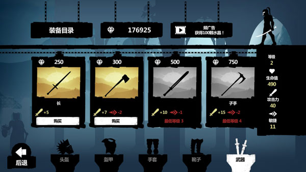 游戏增加了格斗的形式,相应的也会增加很多RPG元素,例如武器、装备等等,玩家在跑酷过程正可以收集白色的宝石,这些宝石都能在商城购买很多厉害的武器装备,让自己的角色能够更加强大。跑酷游戏加入RPG的元素算是比较新颖的手法,这款作品在惊险刺激的跑酷上以格斗带来更加精彩的动作效果,相信玩家们肯定会喜欢的。