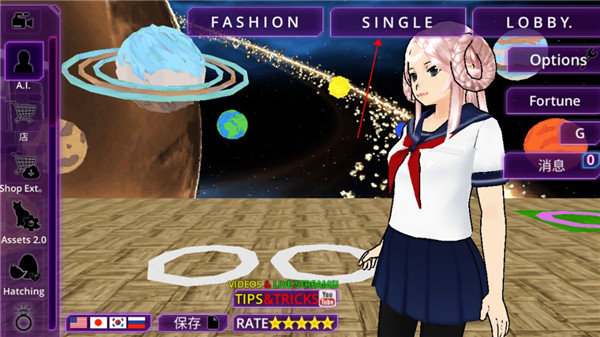 1、打开女子校园模拟器中文版,选择左下方【国旗】图标,