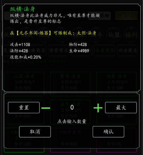 至尊灵液300w,5888仙缘(好像是,记不到了)。至尊灵液的全买。