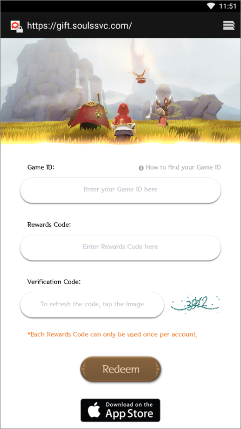 2、至官方兑换网站:https://gift.soulssvc.com/,点击「Game ID」输入游戏id;