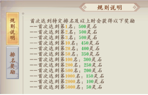 小伙伴们常常会为了灵石不足而苦恼,在演武场中,首次达到指定名次都可获得大量灵石奖励