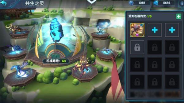 1、玩家等级最高的6只龙自动成为共生对象,其中共生对象里等级最低的龙的等级,决定了共生之灵的祝福等级2、可选取除共生对象以外的龙,放入祝福格赋予祝福,放入祝福格内的龙将自动提升等级至共生之灵的祝福等级