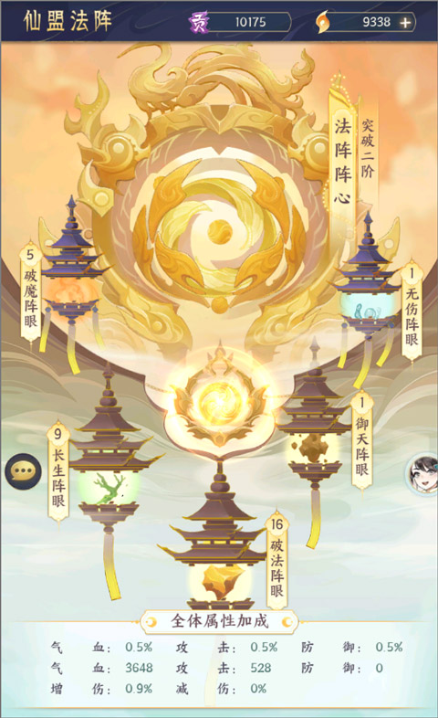 提升仙盟法阵的等级,可以增强仙盟所有修士的各项属性,让仙盟修士们在战斗中法力大增,且仙盟法阵是仙盟飞舟的核心,仙盟法阵等级越高,飞舟杀伤魔物的效果就会越强。