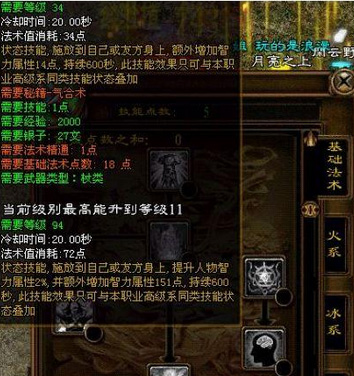 另外玩家可以分别观察火系的火焰强化、冰系的雪之契约和电系的雷神附体,你会发现整体魔法攻击提高效果属火法最高。火法主要攻击技能方面无论是群攻的炎龙杀阵还是单攻的大火球,相比之下都要比其他系列的法师攻击力强很多,并且随着技能等级的提高而越加明显。火法100级别技能赤焰心诀,状态技能,使用后直接提高人物智力,这个是其他系,其他职业都没有的优势,如此就更加提高了火法的攻击力度优势。