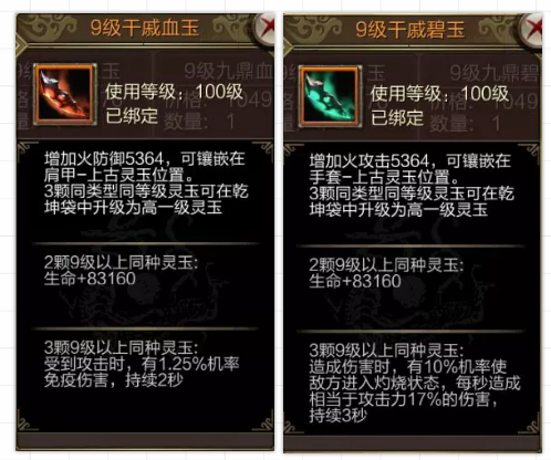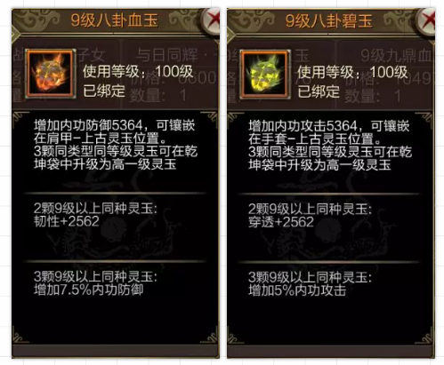 拥有三颗9级以上的同种灵玉,可激活3件套效果;
