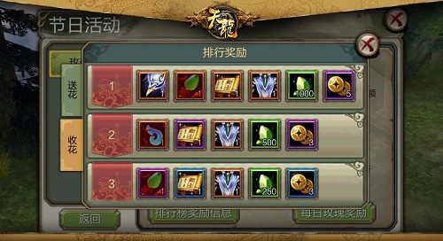 3、每个服务器送花榜和收花榜排名前50的玩家可获得不同品质的105级护符。