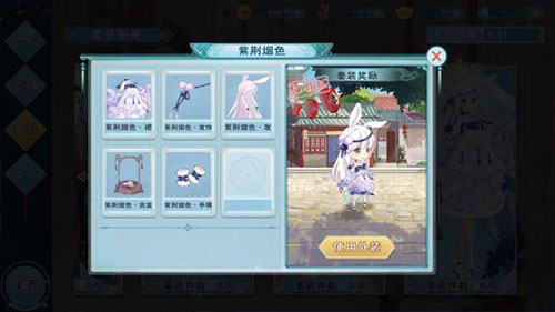和结缘一样,在解锁后更换整套搭配可改变女主在战斗中的q版小人外形,点击左侧套装功能可预览套装q版外形。套装一般通过活动、领取冲销奖励、元宝购买等方法获得,一套外观由服饰、发饰、发型、配饰、手持、坠饰这几部分组成。
