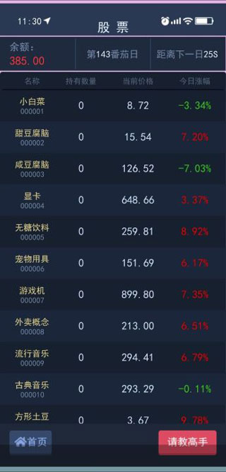 3、股票:在这里可以查看各种股票的买卖价格