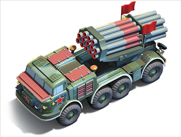 作为喀秋莎火箭炮的发展型号,它更加强大。能在极短的时间内向敌军阵地倾泻十余发220毫米火箭弹,瞬间造成毁灭性的打击。