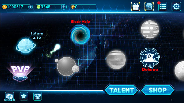 该游戏有10个关卡,附加一个PVP模式。每个关卡都有10关,难度按顺序依次变难。而Black Hole则是第二个大的关卡模式,需要玩家完美通过前10个大关卡才能开启。而PVP模式则需要谷歌四件套,否则就不能开启。听起来是不是觉得有句“FuXX”想说?但是为了能和别人一起PVP,我觉得还是值得的!