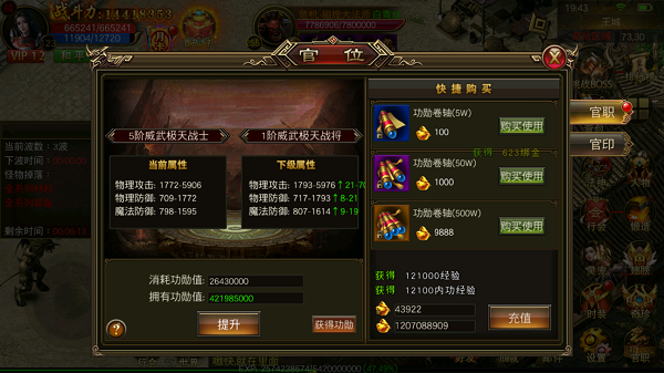 3、当拥有一定的功勋时可升级功勋,获得属性和称号
