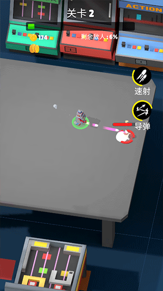 同时游戏的操作也是非常的简单,在战斗过程中由于攻击是自动的,因此玩家只需操控机器人移动方向即可,通过巧妙的走位来躲避敌人的攻击,完成一系列的挑战和冒险任务,感受畅快的战斗体验。