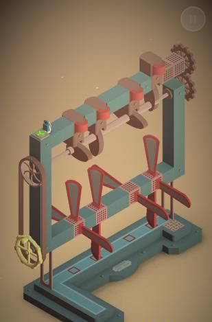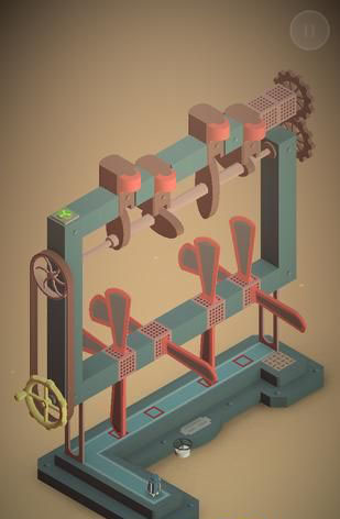 通过不断的转动机关改变扇叶的方向,让机器人顺利的通过下方的通道,登上升降台来到中间一层。中层的玩法基本相同,就是要在行进的过程中将机器人弄到侧面。