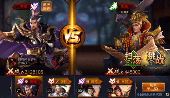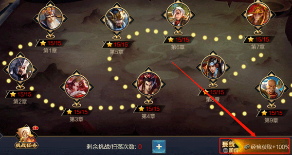 小技巧:如果你的战力很高,一定不要把队伍上满,会浪费大量的粮食。一般高战上1-2个主力就能3星通关