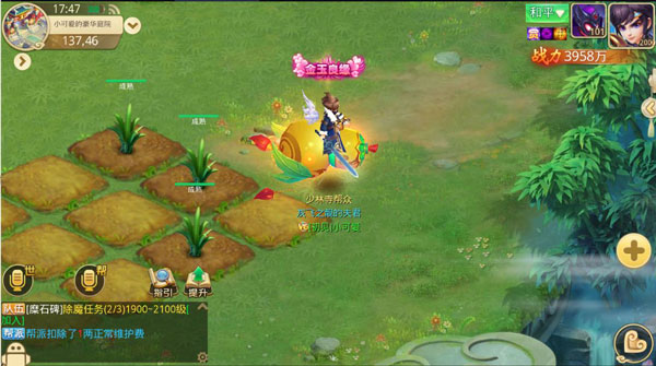 4、种植界面玩家可以种植作物获得铜币,有仙园精灵可以获得自动收成作物。