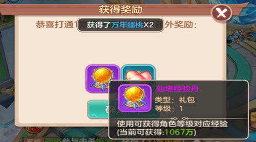 而通关仙炼塔的时候部分关卡的奖励里面包含了一颗仙塔经验丹,而使用经验丹可以获得大量的经验,这也是一个重要的经验来源喔,所以说在任务全部完成的情况下,千万别忘了来打一打仙炼塔哦(ps:每层仙炼塔都有着推荐战力,当战力达到推荐战力后百分百可以通过的,而且每天的挑战次数是无限次的,所以战力提升后记得来打喔)