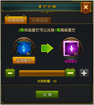 3)所获得的星芒,可以通过“星芒转换”,通过一定比例将低品质的星芒转换为高品质的星芒。