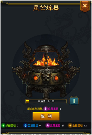 1)获得的星芒大有用处,消耗一定数量的不同品质的星芒,可以炼制不同级别的兵器。