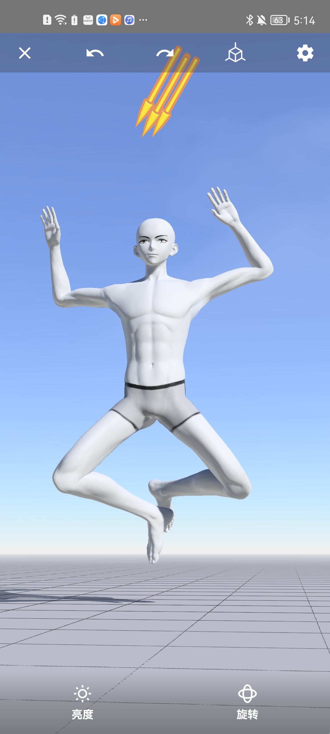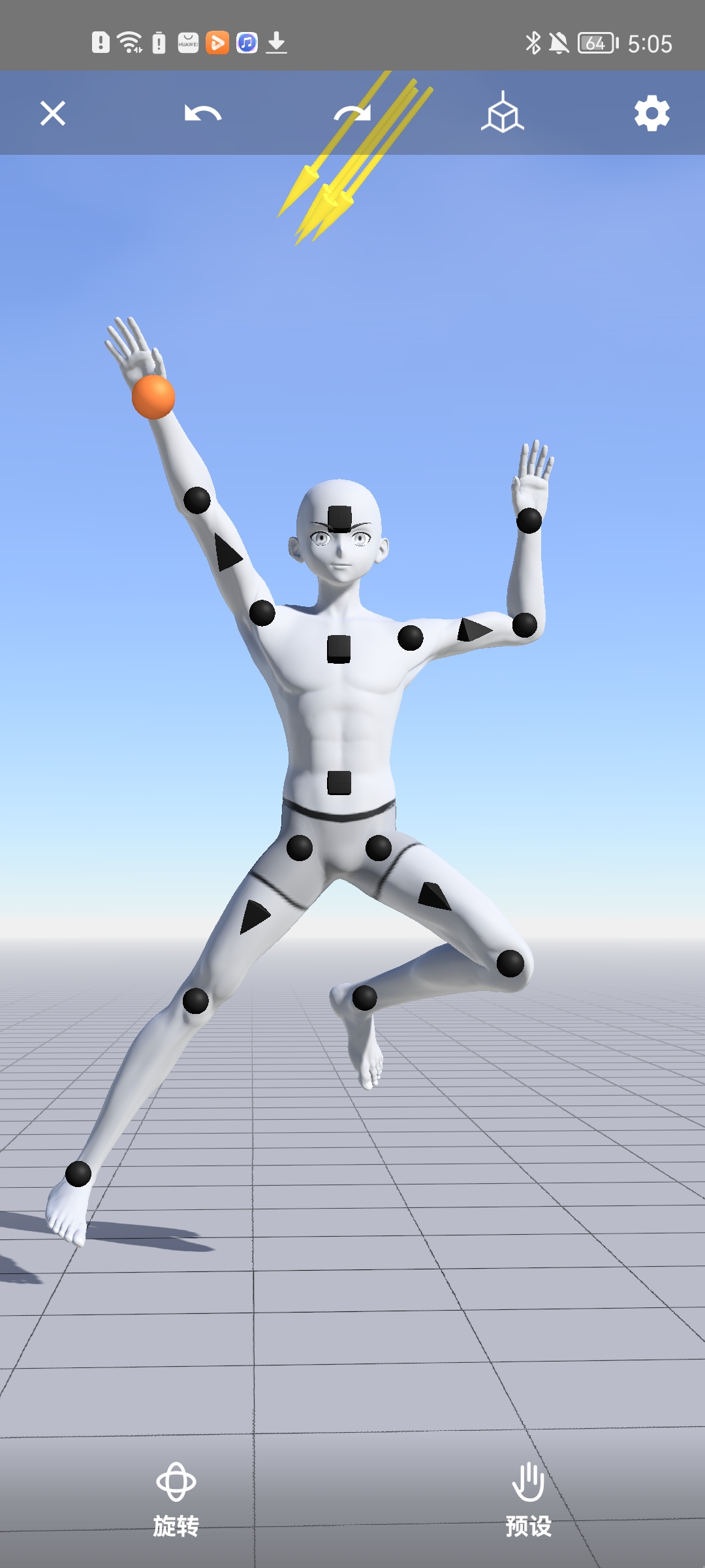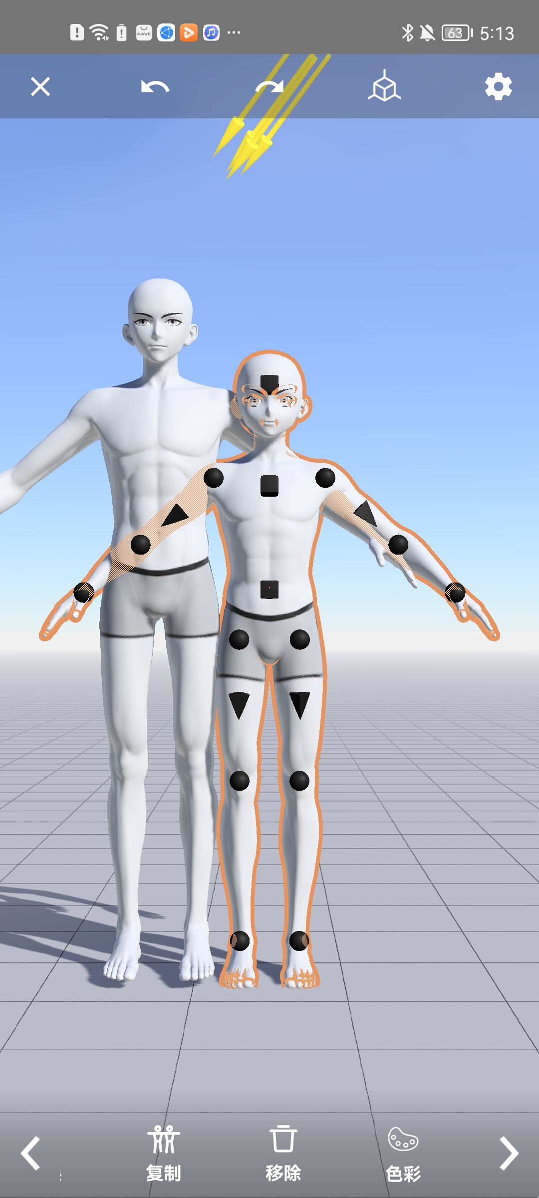 4、随后自定义diy角色啦,上面的黄色箭头是将身上的关节点都消除的功能