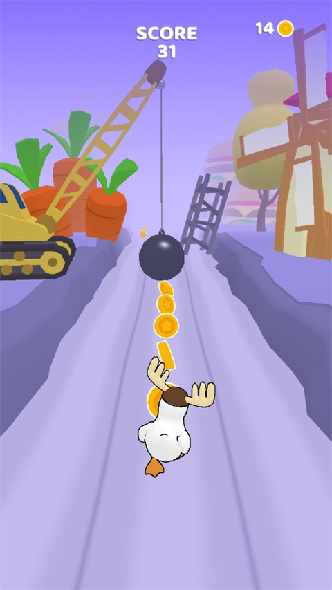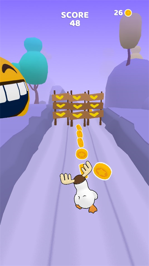 1、延续经典的跑酷玩法模式,在各个不同的场景地图当中让小鸭子向前奔跑冲刺,超越其他的竞争者,收集金币购买相应的道具助你跑得更远。