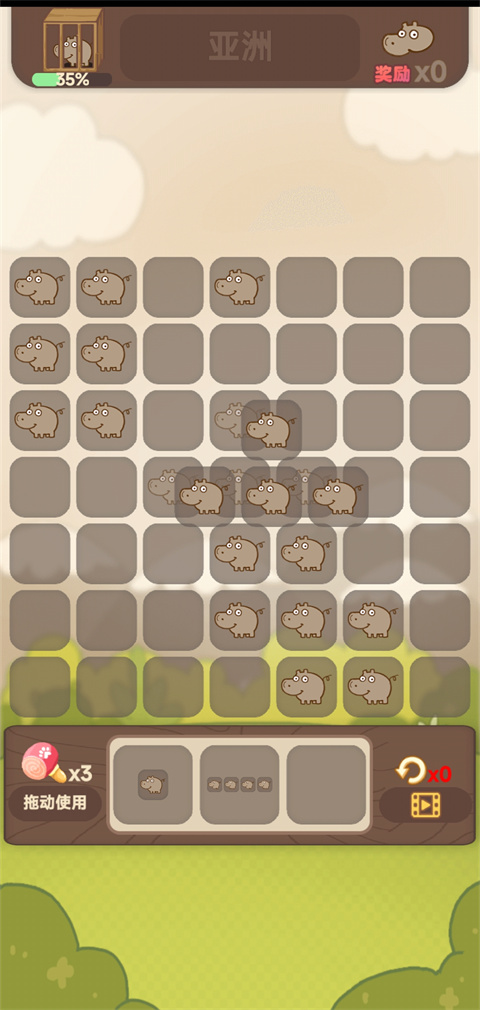 4、在动物消消乐小游戏中我们需要将下方的动物移到空白的方格中进行一行和一列的消除;