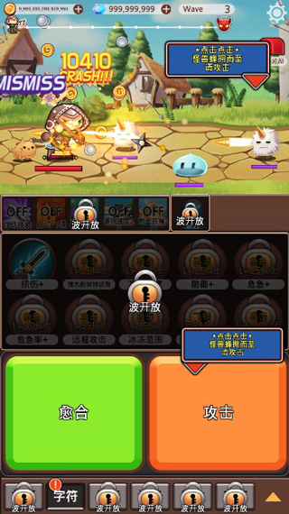 角色的属性及宠物的养成是前期必须要经历的,花费一定金币可强化升级你的攻击、生命、防御、致命一击,以及两大宠物所带来的自动攻击和治愈效果。