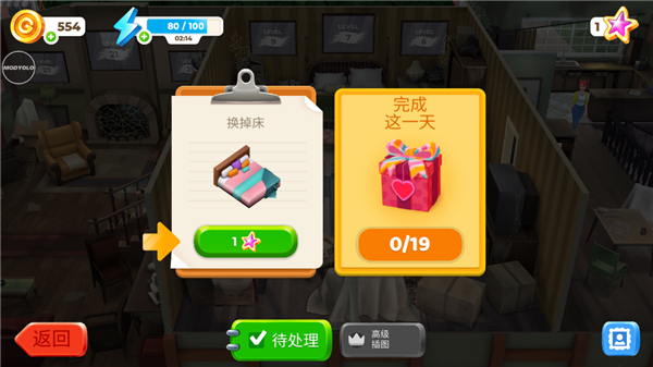 对于那些不知道从哪里开始游戏的人,让这个游戏帮助你。具体来说,游戏拥有一个需要修复的对象系统。因此,当您单击任务时,您会看到一个对话框,指向需要替换的项目。所以如果你有足够的星星,你就可以马上点击星星图标按钮,你会得到三个选择,对应三种不同风格的东西。