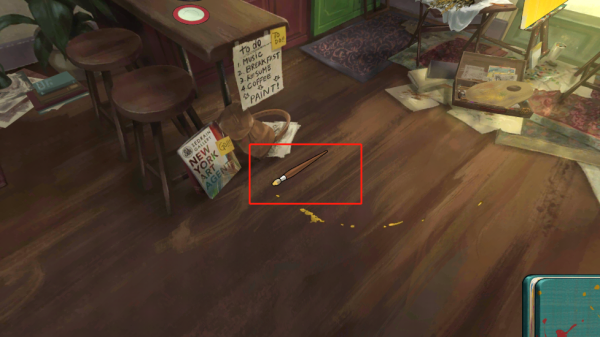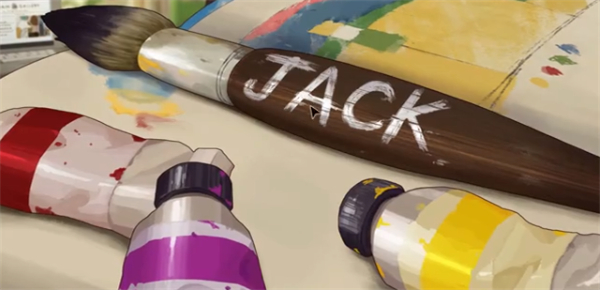 5、来到屋子内,点击打开的门,触发剧情,剧情结束后拾取地上的画笔,记住上面的字母JACK