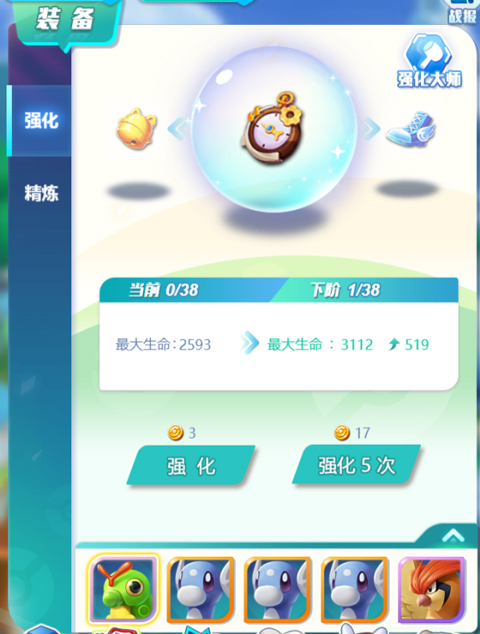 装备系统主要是用于提升宠物能力的一个地方,进入装备强化界面,可以提升装备的等级和品阶,每一个提升方式都能一定程度不用属性加成