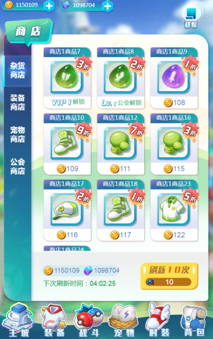商店中出售各种道具,可以通过刷新,替换新一批商品,也可以等待商店自动刷新。部分商店商品会打折出售,购买打折商品更实惠。