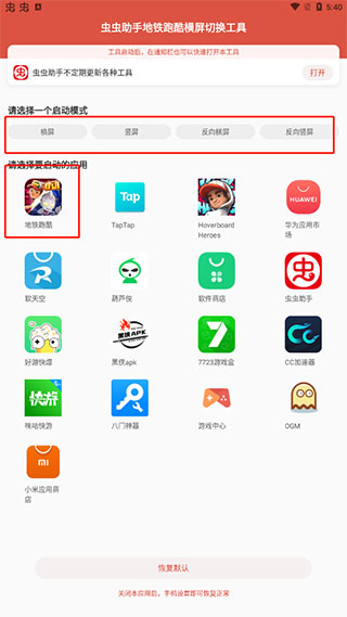 1、首先下载好本站带来的地铁跑酷横屏切换工具,选择应该自己想要的横屏模式。
