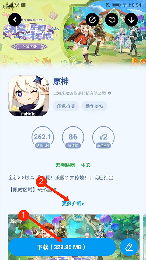 3、进入详情界面,选择下方【下载】选项即可进行下载安装,如果需要下载旧版本的话可以选择【更多介绍】选项,