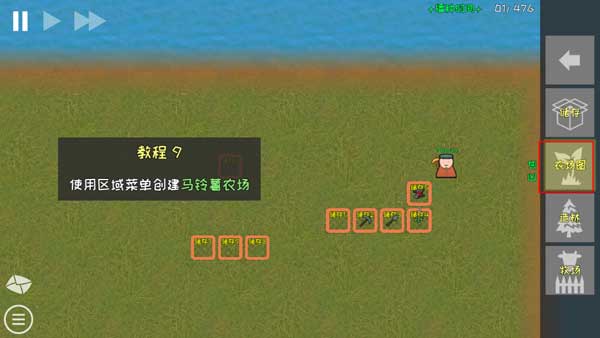 6、下面就是需要选择区域菜单来创建库存。点击农场图来创建马铃薯农场。