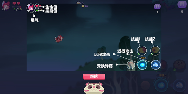 3、在游戏里,玩家要控制好哞哩,通过近战爪击、远程弹药和技能释放等攻击方式组合来打败怪物和boss,但还要小心飞行中的障碍物和会动的地图哦~