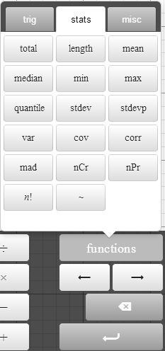 我们完整的 Qwerty 键盘具有标点符号和pi字符。您还可以使用我们的功能键盘访问更高级的三角函数和统计函数。