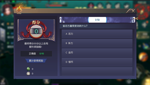 每日开卷是一个每日趣味答题的玩法,玩家每天可以答10道题,从中获取海量银币和经验值。