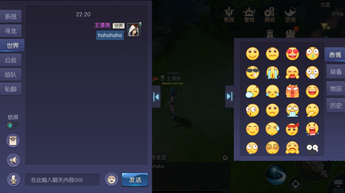 玩家可以选择在频道中发送文字、语音、表情,以及物品链接。海量表情包等着你
